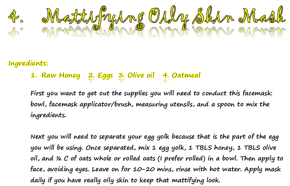 egg yolk provides protein back to the skin and oatmeal helps with mattifying