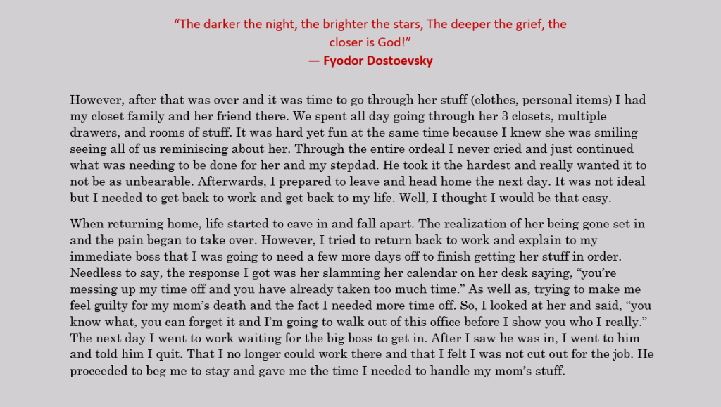 1. I felt like I was reliving the phone call. Thank you for sharing. As Kasey’s 1 year of being gone approaches, it’s nice to be reminded we have each other to celebrate the life and mour the loss of those we love. Always here for you, my ride or die. Love you guys, always.