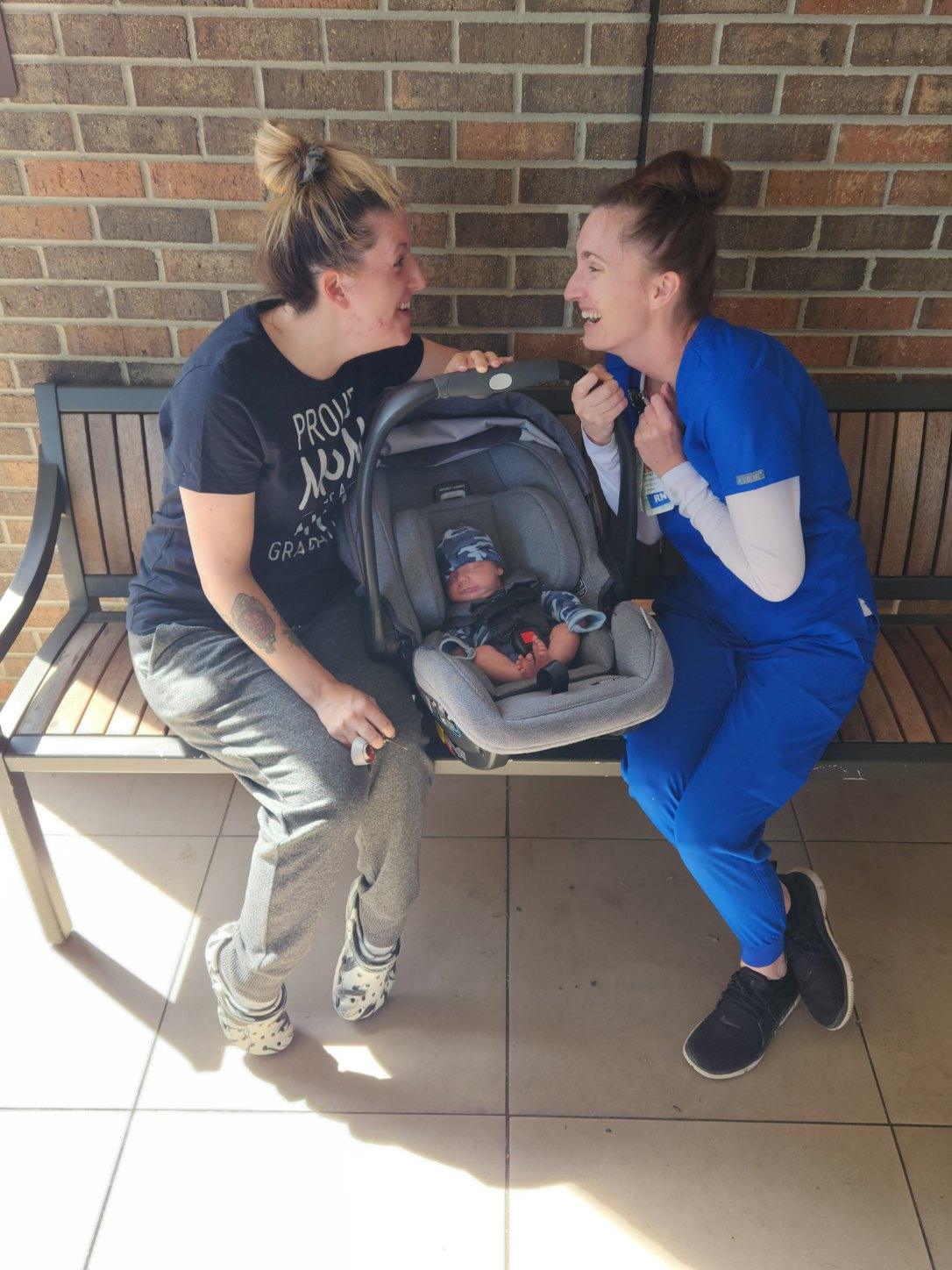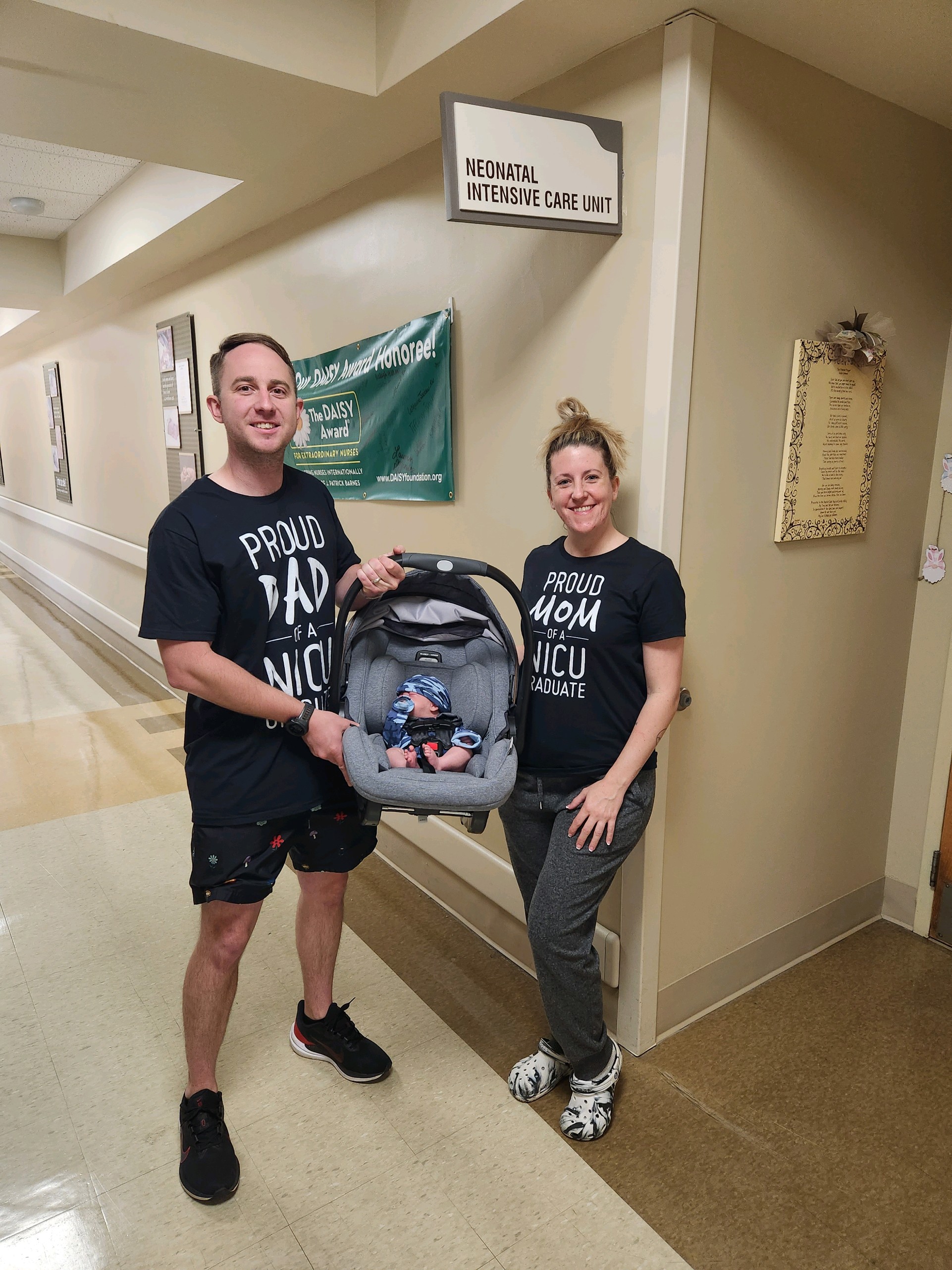 After we started over, and the days passed we were again prepping for him to go home. We came in around the 5th day and he was out of his incubator and in a regular crib. We were told he passed his car seat test as well, which was another thing we had to mark off the list. We finally saw a light at the end of the tunnel. We were told that day that Charlie would finally be going home the next day. So, after our visit, we went back to my dad’s, got the items we needed together, and prepared for Charlie to leave the next day. As we arrived that day to spend the night overnight with Charlie in the hospital, we were both overjoyed and exhausted because we still had to feed him every 4 hours around the clock and let nursing know what he ate and his temp. It was a hard night but the most rewarding. As the morning approached, we got packed up and headed to the NICU rooms to say goodbye to all our favorite nurses and doctors. It was the happiest and scariest day. We couldn’t believe after 73 days in the NICU our little man was finally coming home and right before Easter no less. After saying goodbye to everyone, we were getting ready to get Charlie in the car when my sister from another mister came running through the lobby to see Charlie. It was a great moment we got to share with me having a child like we did when she had her children. It was a great moment!